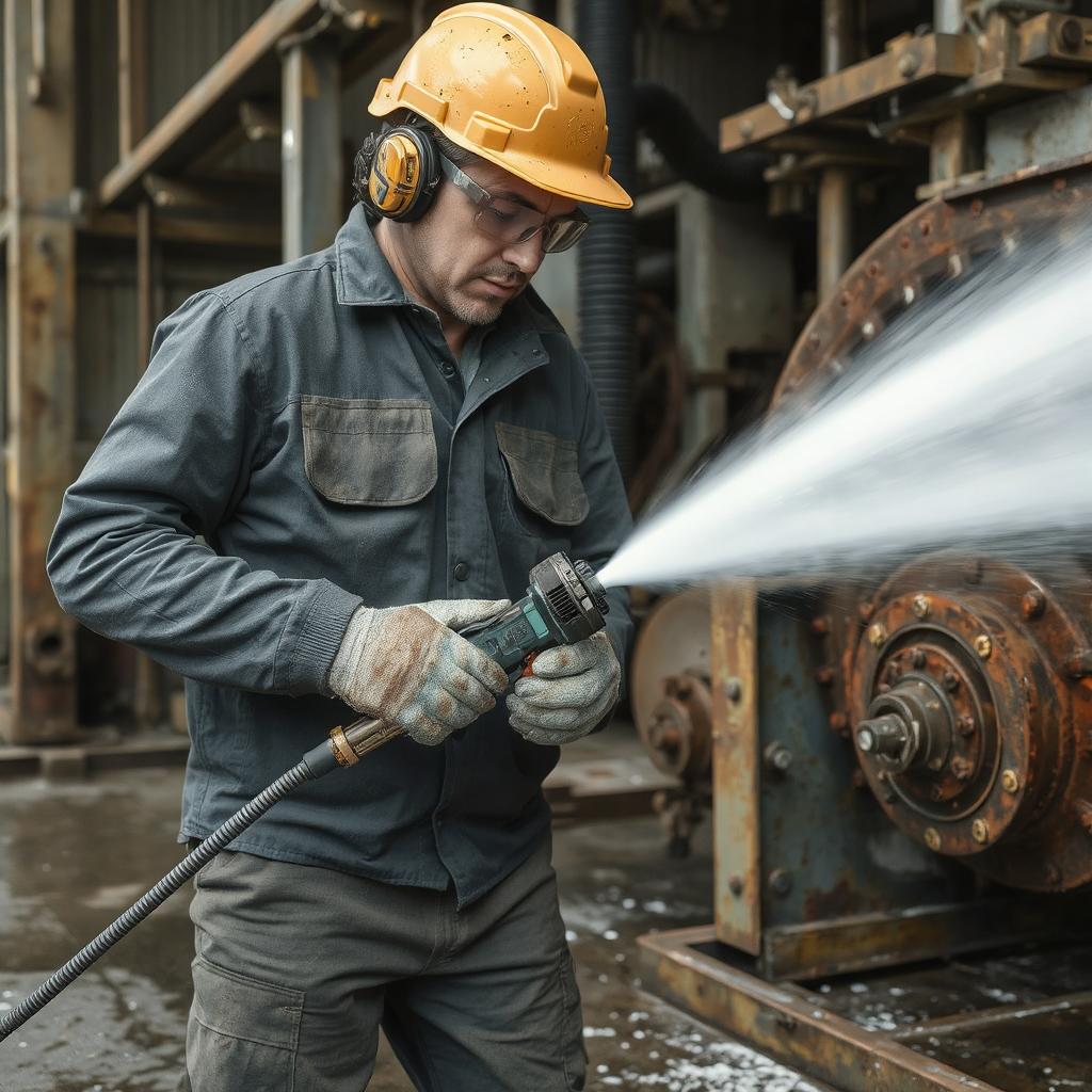 - Hydro-blasting for tough cleaning tasks, such as removing paint, grease, and corrosion from machinery and metal surfaces.